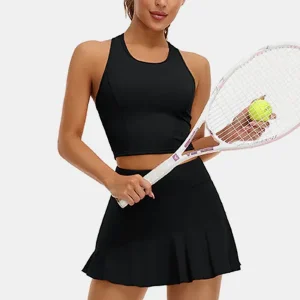 2 Piece Tennis Dresses for Women with Shorts and Pockets Golf Workout Outfits Skirts Sets Black