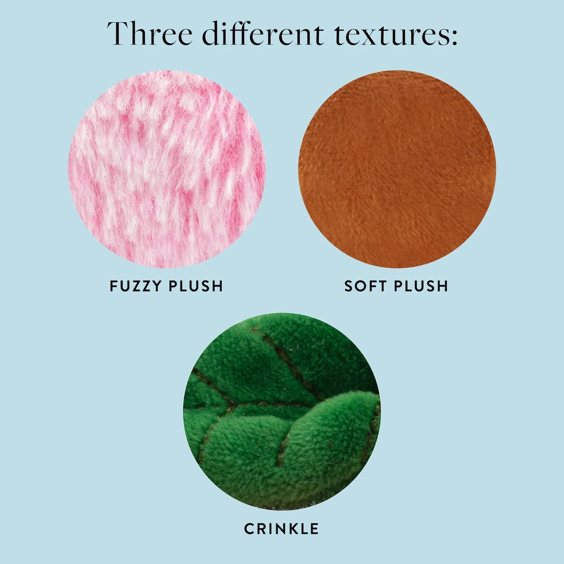 - Three different textures provide tactile stimulation