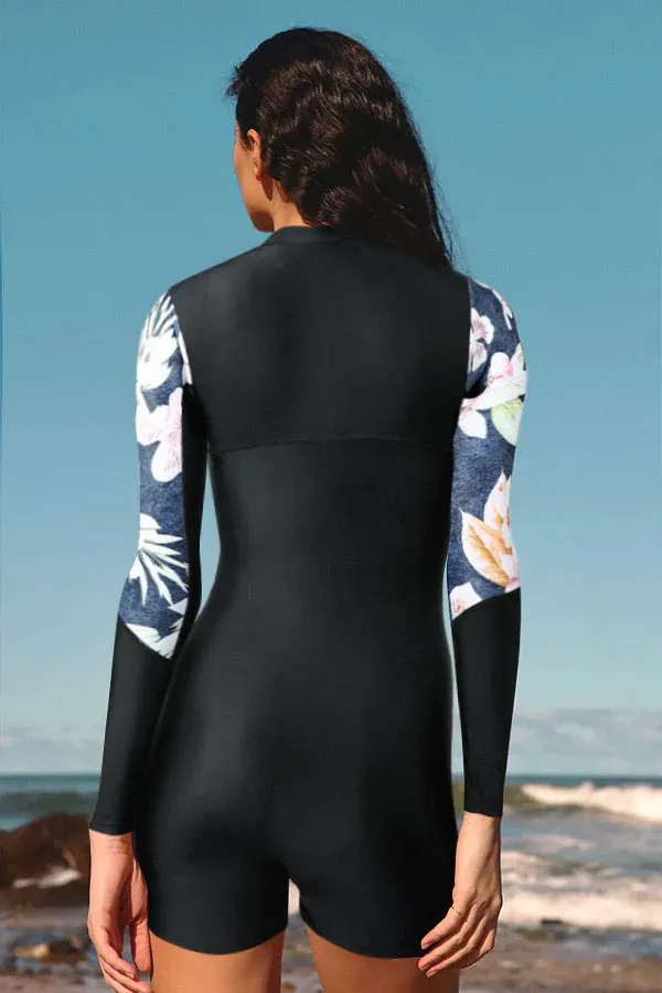 Featuring a beautiful floral print on the sleeves and a solid black body, this stylish women one piece swimsuit is both unique and sophisticated. The high-quality fabric is both comfortable and durable, ensuring that you can wear it all summer long.