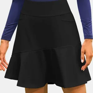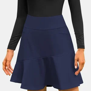 This tennis skirt features a lightweight mesh outer layer and A-line pleated hem. Lightweight pleat flows and flares with you as you move while keep their shape. Sporty, cute, yet feminine. Lightweight flowy skirt with shorts underneath are a great combo which add support and cover all your twirls. 2 side pokects on shorts liner give you enough room to hold tennis balls or phone. The tennis skorts with 2.8″ elastic high-rise waistband which provide plenty of coverage and can tummy control mildly to stay in place, not roll down when you play tennis and golf. The tennis skirt’s airy, lightweight outer mesh layer and built-in soft, sweat-wicking, four-way stretch nylon liner to move sweat away from your skin for quicker evaporation, helping you stay dry and comfortable on the court