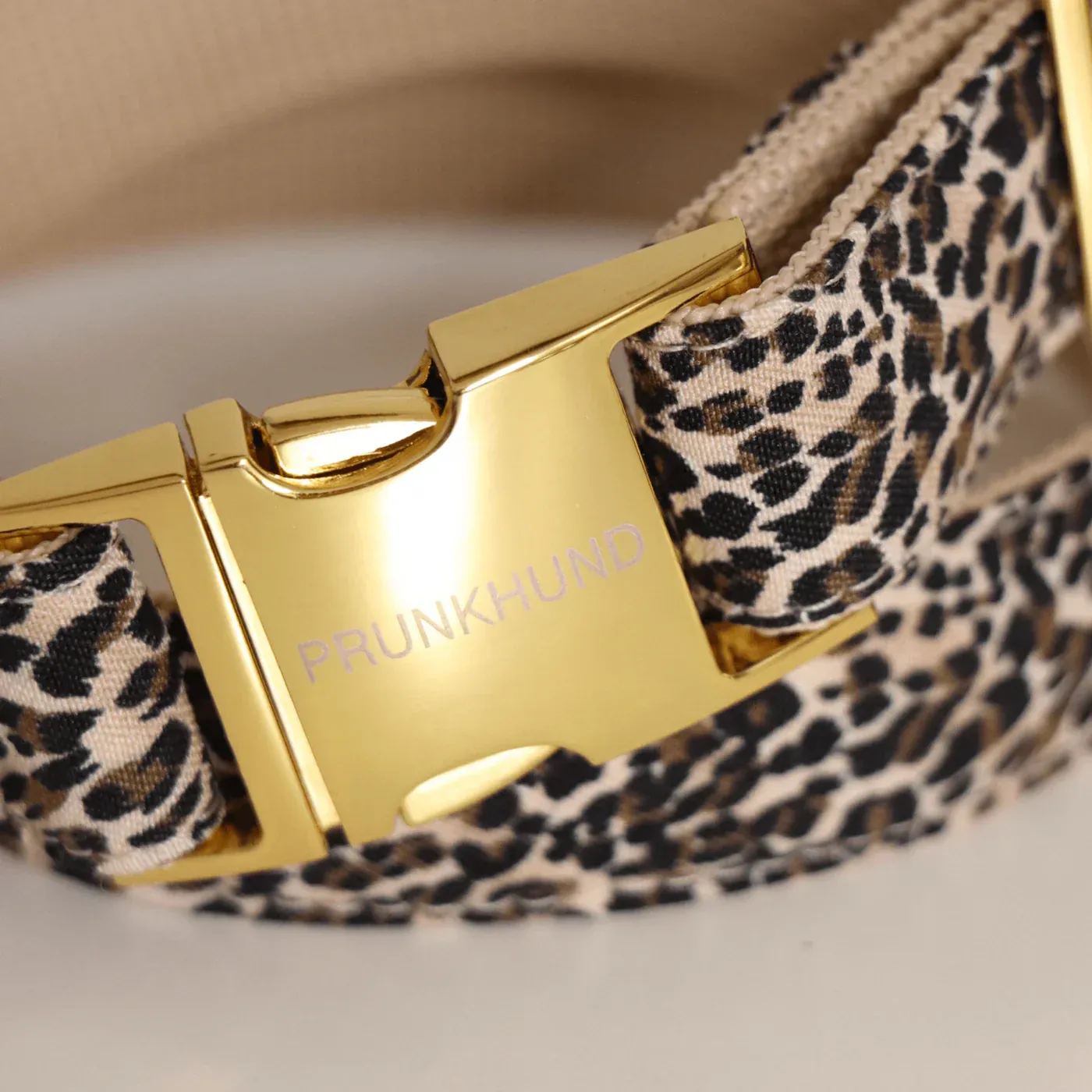 Leo pattern dog collar with metal parts in matt gold for your pompous dog!