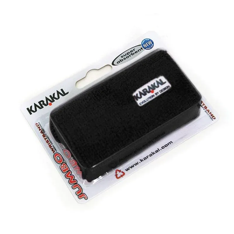 The Karakal Badminton Jumbo Wristband is a super absorbent cotton extra wide wristband with an embroidered logo.
