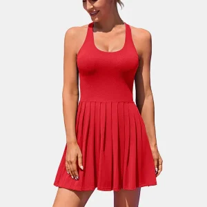 The A-line silhouette and flowy pleated hem of this tennis dress offer a wide range of movement, creating a sporty and youthful look during a workout. Tennis outfits come with removable bras for adding supports and the separate shorts with two side pockets provide more convenience. Made from seamless fabric, our ribbed athletic dress is moisture-wicking, stretchy, breathable, and quick-dry, always keeping you cool in summer.